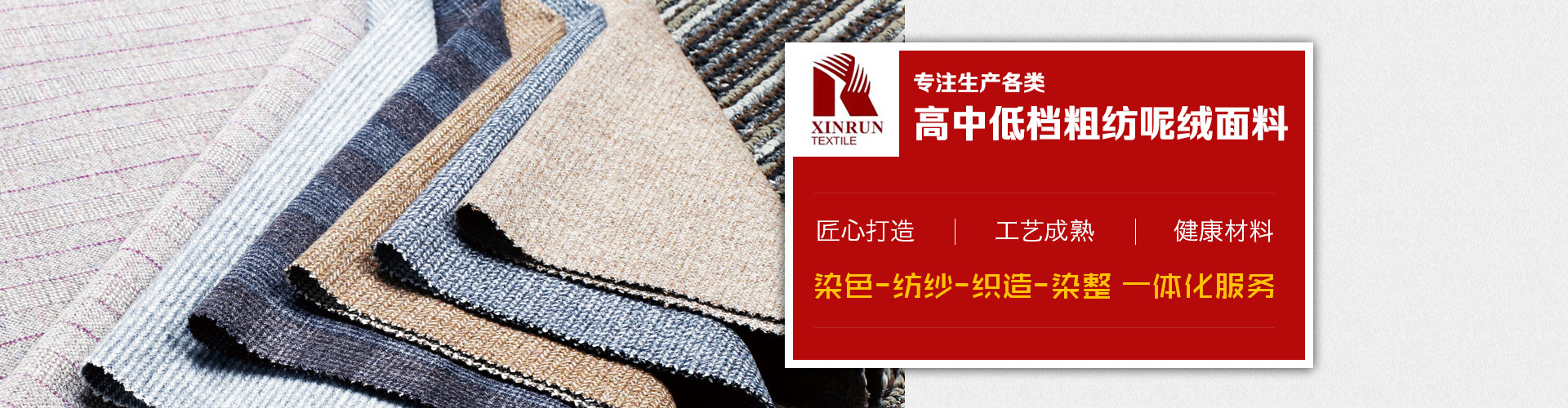 上海鑫潤紡織品有限公司是一家從事開發(fā),生產(chǎn),銷售為一體的毛紡面料公司,公司生產(chǎn)各類高中低檔粗紡呢絨面料,并下轄控股毛紡廠3家,擁有先進(jìn)的生產(chǎn)設(shè)備和的管理體系,不僅在國內(nèi)市場享有良好地信譽(yù),而且產(chǎn)品遠(yuǎn)銷美國,歐洲,俄羅斯,韓國,日本等不同國家,贏得了國外市場的一致好評。憑借優(yōu)良的品質(zhì),良好的信譽(yù),我公司還是ZARA,H&M,C&A,JACK&JONES,MANGO,TARGET,PROMODE,ORSAY等國外知名品牌的供應(yīng)商。